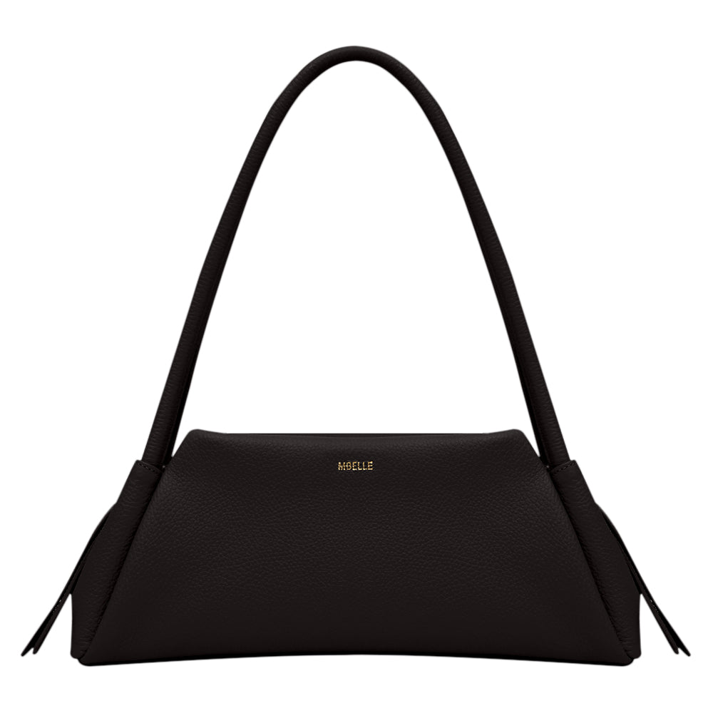 Seu formato geométrico e alongado revela uma estética contemporânea para a clássica bolsa baguette.