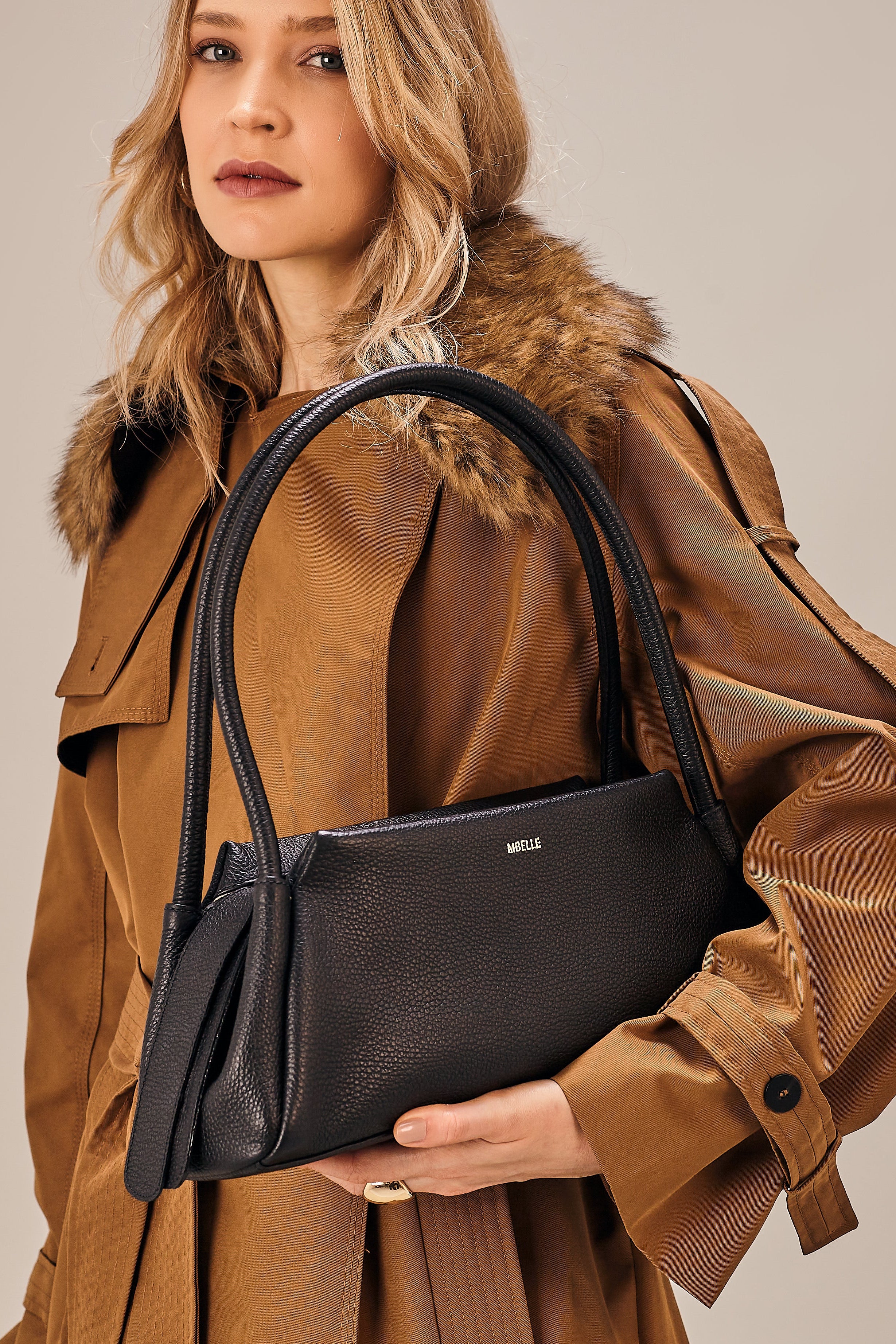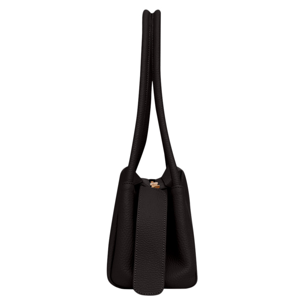 O design estruturado é suavizado pela textura natural do couro floater, de toque macio e sofisticado.