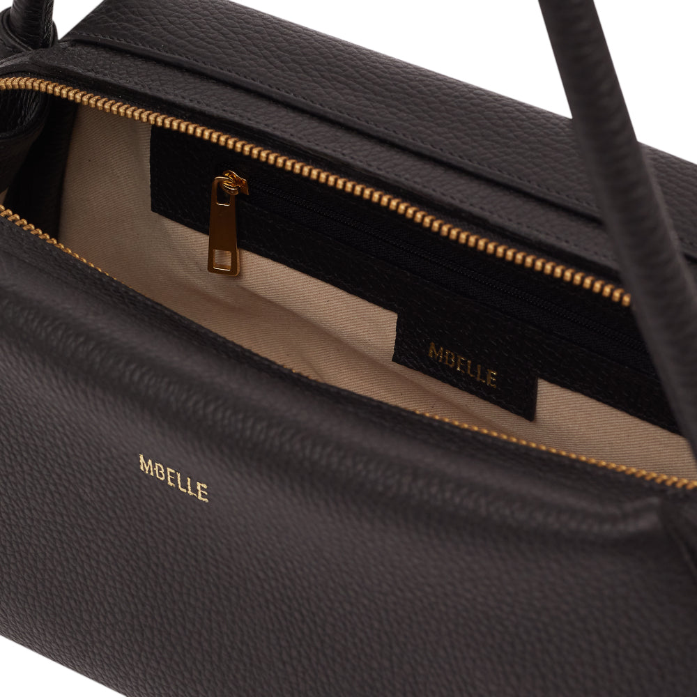 Ísis possui amplo espaço interno, e seu fechamento por duplo zíper proporciona praticidade e fácil acesso ao interior.