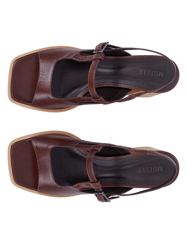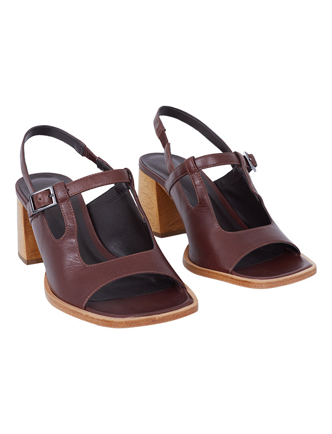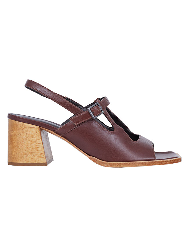 O recorte frontal no cabedal alongado traz leveza e valoriza a silhueta, enquanto o salto bloco em madeira esculpido a mão, garante estabilidade ao caminhar.
