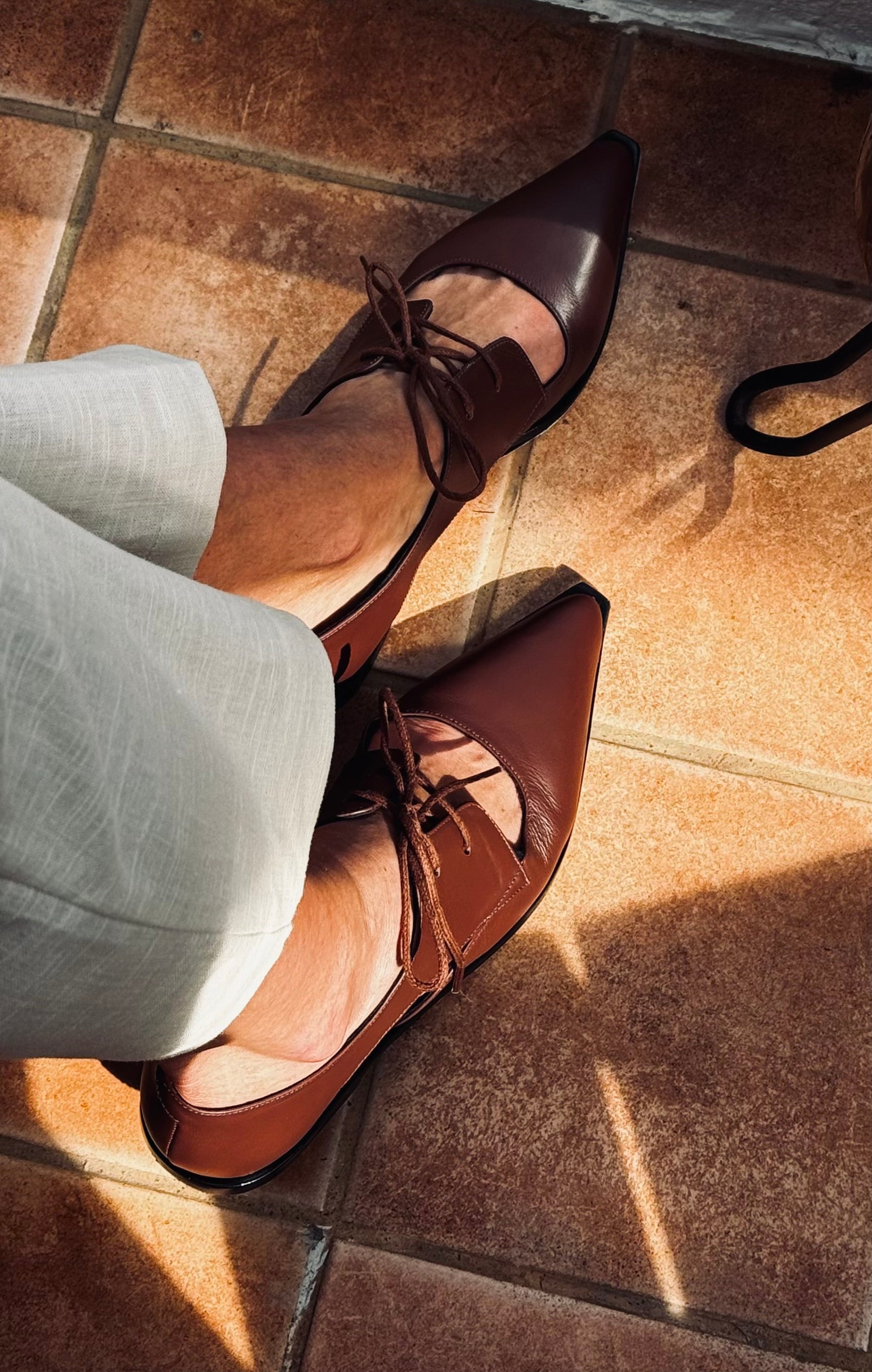 A sapatilha Emanuele traduz o equilíbrio perfeito entre design contemporâneo e essência artesanal. Confeccionada em couro legítimo de origem certificada, apresenta recortes laterais que conferem leveza e personalidade ao visual, enquanto o bico alongado adiciona sofisticação imediata à silhueta.